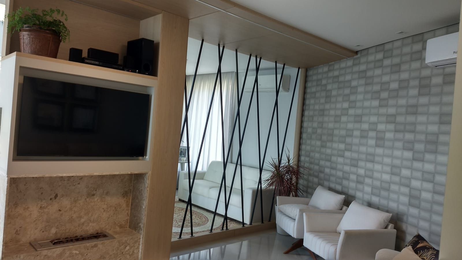 -Sala de estar, jantar, cozinha com churrasqueira a carvão