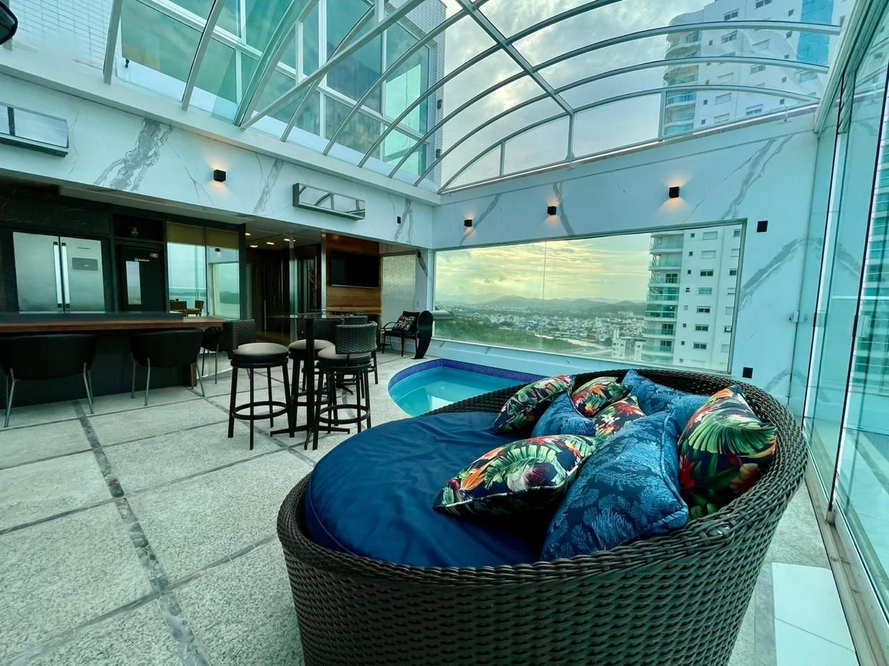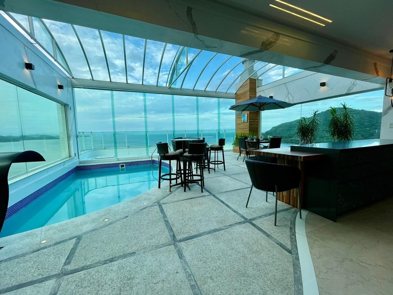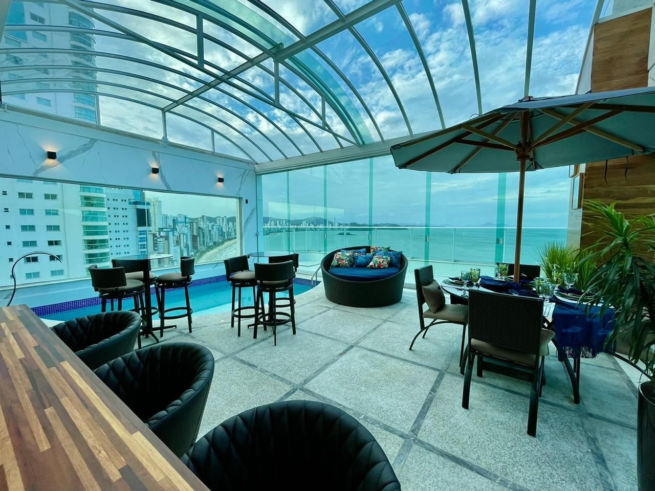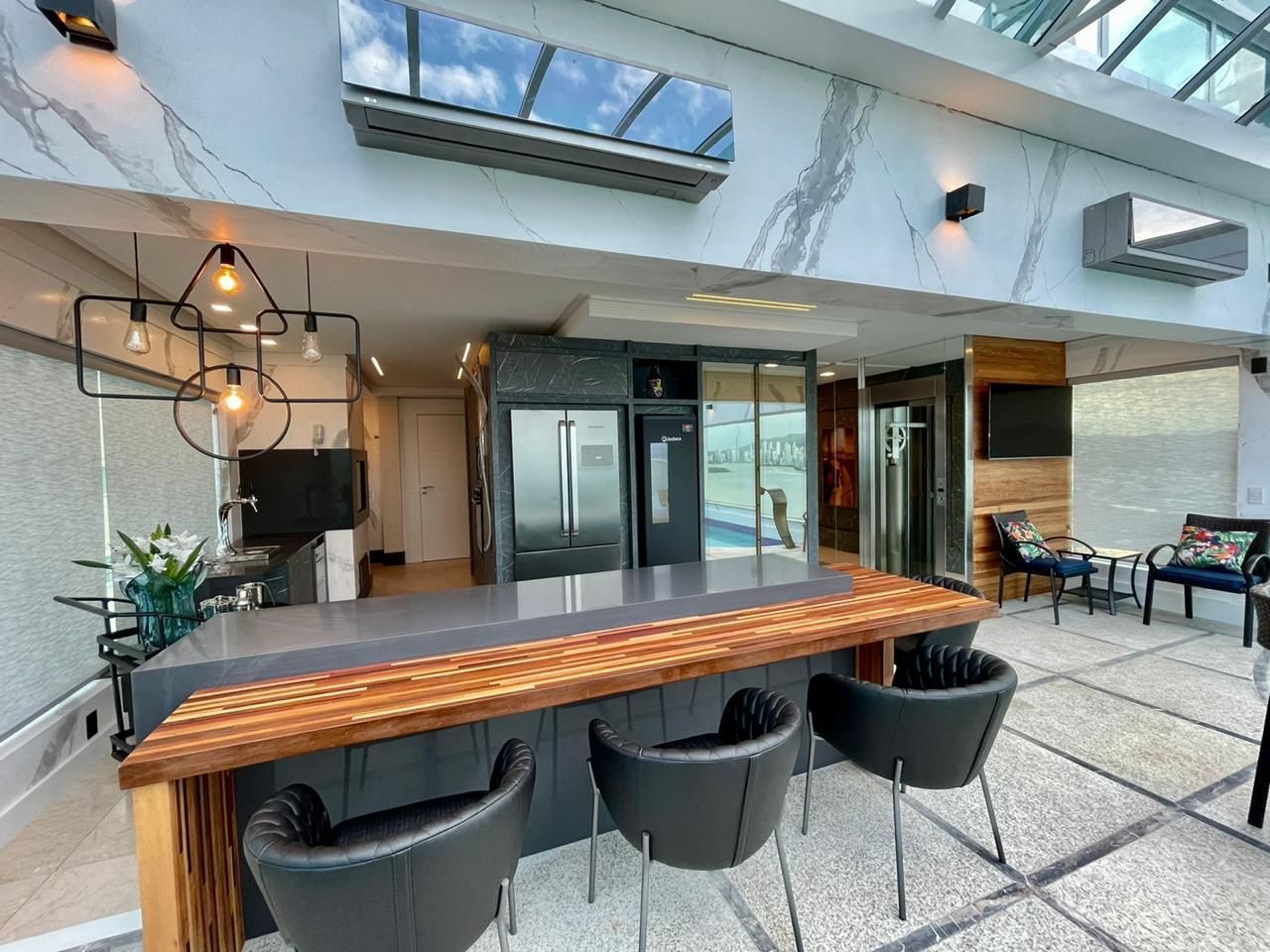 - Área de Festa com cozinha completa e churrasqueira (com paredes laterais de vidros duplos laminados e temperado)