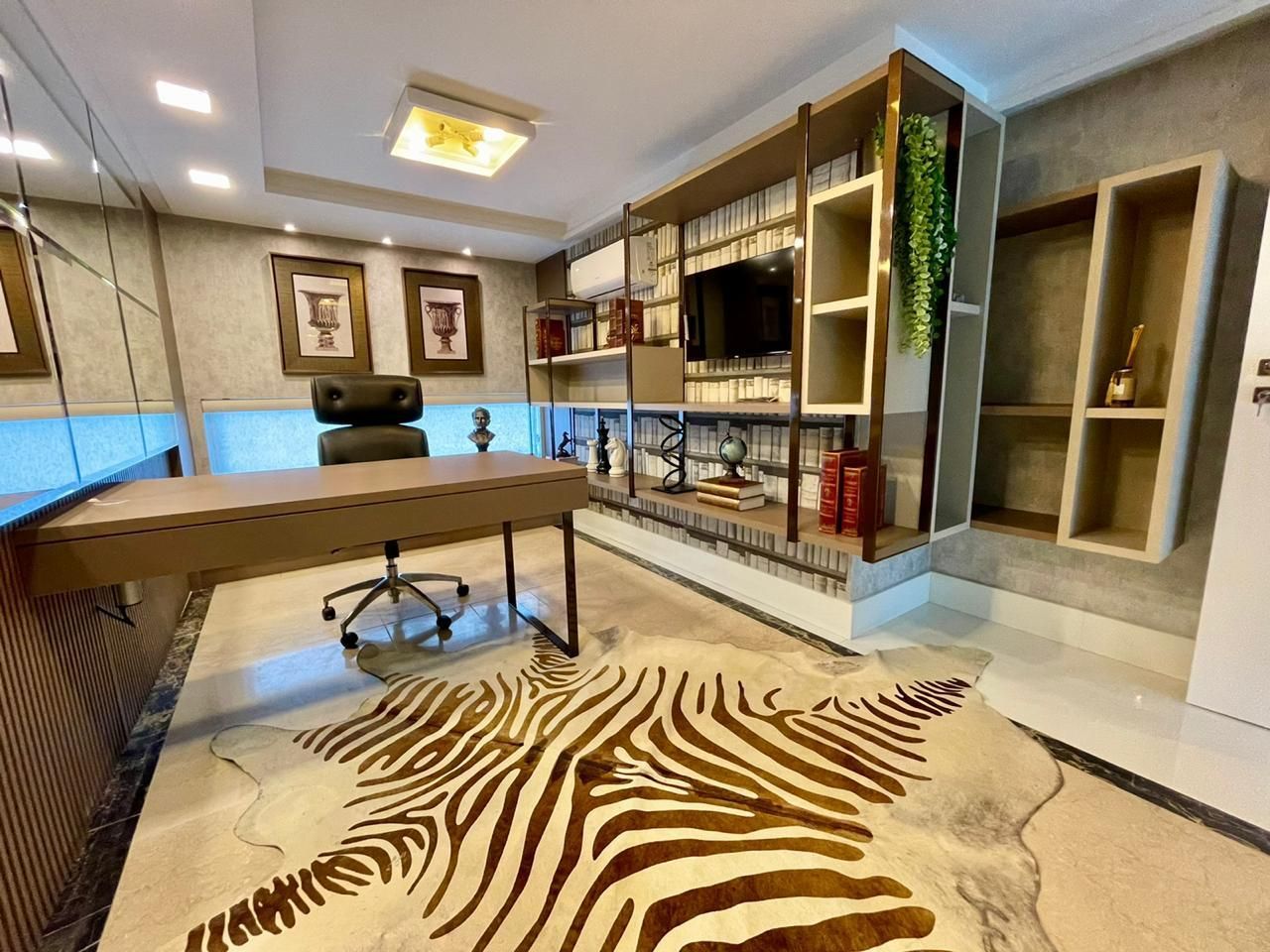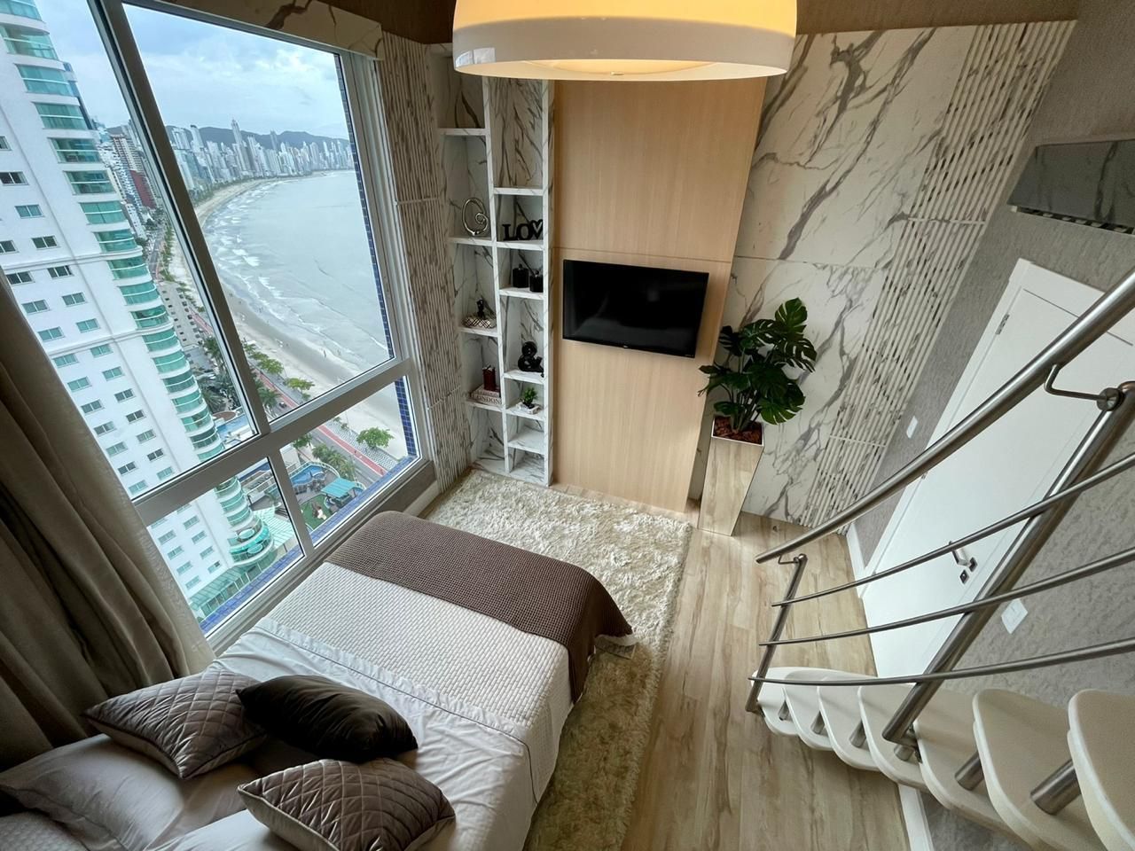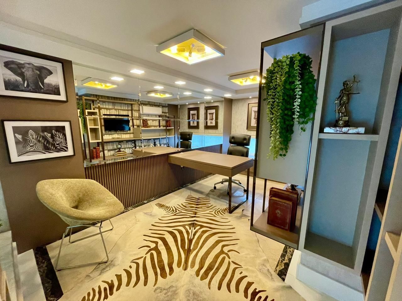 - Sala com pé direito alto, paredes laterais de vidro duplos laminado e temperado